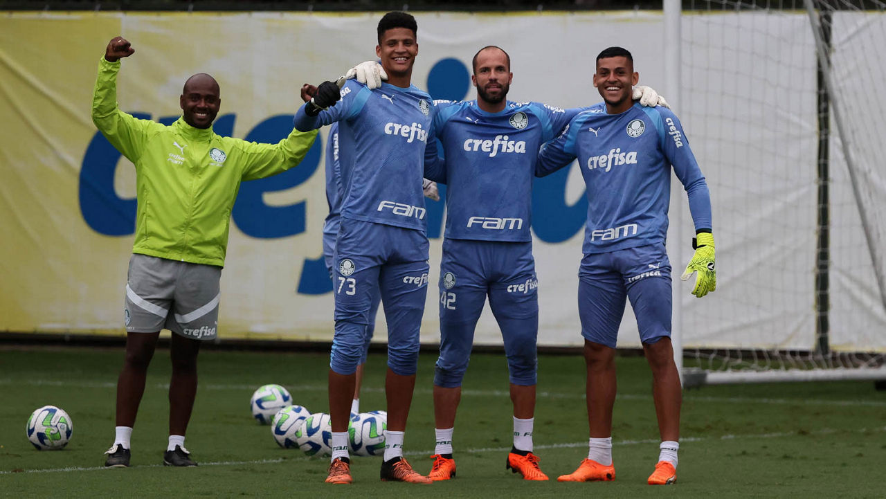 O Palmeiras finalizou na tarde deste sábado (07), na Academia de Futebol, a preparação para o duelo com o Santos, no domingo (08), às 16h, na Arena Barueri, pela 26ª rodada do Campeonato Brasileiro. Com todos os jogadores à disposição e debaixo de chuva ininterrupta, a comissão de Abel Ferreira comandou atividades técnicas de posse de bola em dimensões reduzidas. Em transição física, o colombiano Atuesta participou da primeira. Na sequência, houve um trabalho técnico com duas equipes se enfrentando.