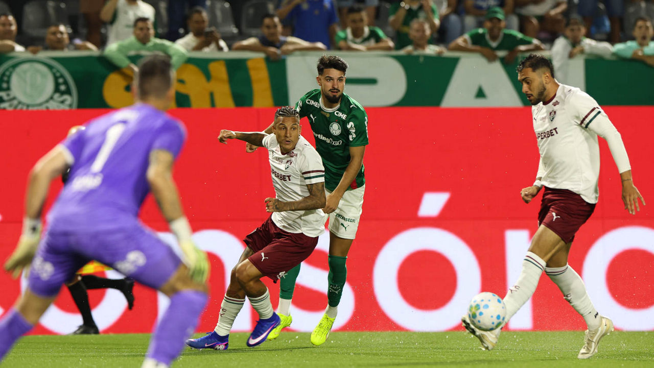 Com gols de Vitor Roque e Allan, o Palmeiras venceu o Fluminense por 2 a 1, nesta quarta-feira (25), na Arena Crefisa Barueri, em Barueri (SP), e manteve a liderança do Campeonato Brasileiro – com o triunfo, o Verdão chegou aos 10 pontos conquistados no torneio nacional. O Alviverde é o segundo clube que mais vezes ocupou a ponta da tabela da competição em toda a era dos pontos corridos: são 127 rodadas na primeira posição, só atrás do Corinthians, com 131, e seguido por Cruzeiro, com 109, São Paulo, com 92, Flamengo, com 88.