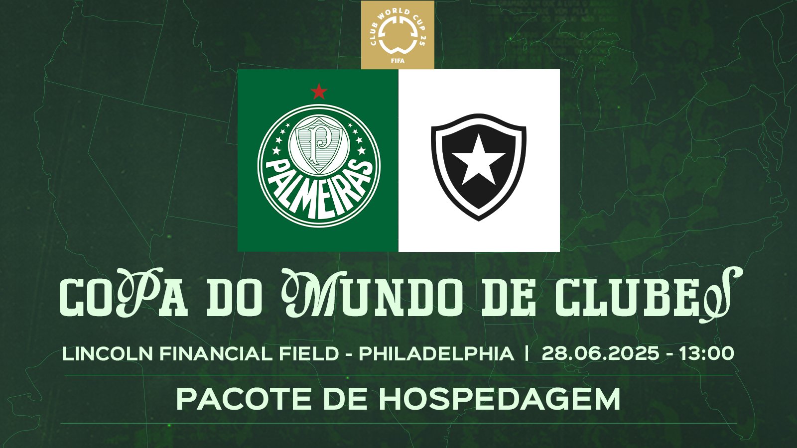 A Palmeiras Viagens, operadora oficial do Maior Campeão do Brasil, preparou pacotes com hospedagem e traslados para o duelo decisivo com o Botafogo, que ocorrerá no sábado (28), às 13h (horário de Brasília), no Lincoln Financial Field, em Filadélfia (EUA). Sócio-torcedor Avanti tem um desconto especial.