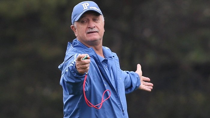 Cesar Greco/Ag. Palmeiras/Divulgação_Alexandre Mattos, Maurício Galiotte e Felipão conversaram antes do treino deste sábado (29)