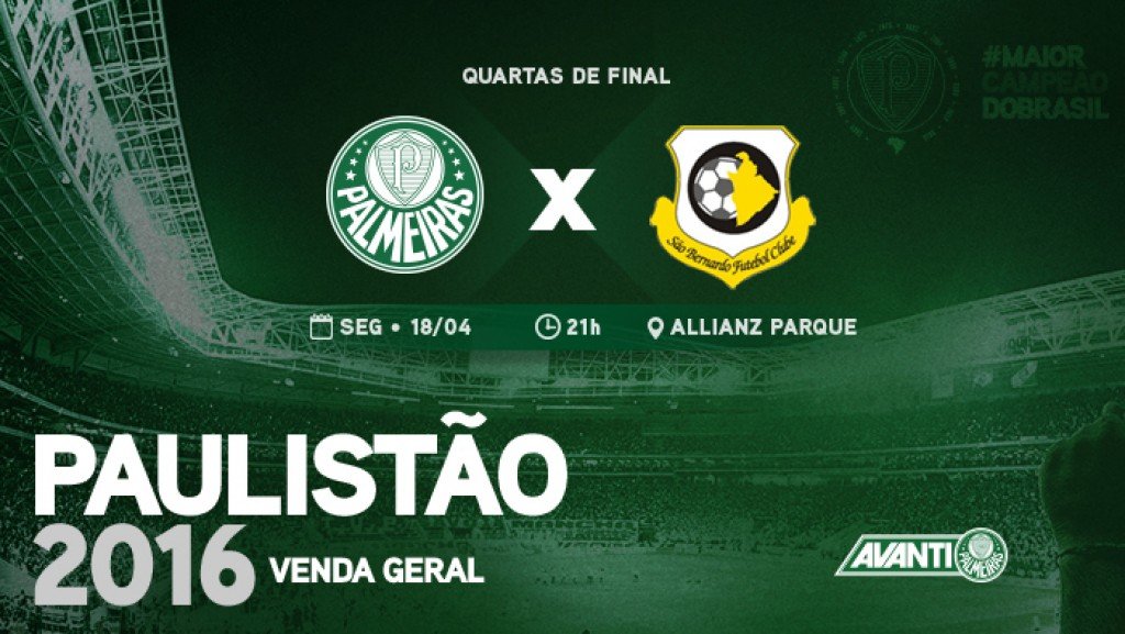 Os ingressos para o jogo entre Palmeiras e São Bernardo, que acontecerá nesta segunda-feira (18), às 21h, no Allianz Parque, em duelo válido pelas quartas de final do Campeonato Paulista, estão à venda para todos os torcedores por meio do site www.futebolcard.com, sendo que 23 mil foram vendidos antecipadamente – o setor Cadeira Gol Norte está esgotado.