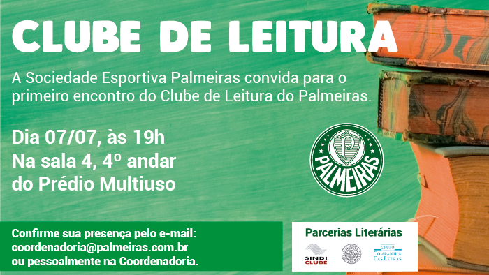 Participe do primeiro encontro do Clube de Leitura do Palmeiras Postado em 27 de junho de 2017 - 16:03 por admin-plm. Departamento de Comunicação