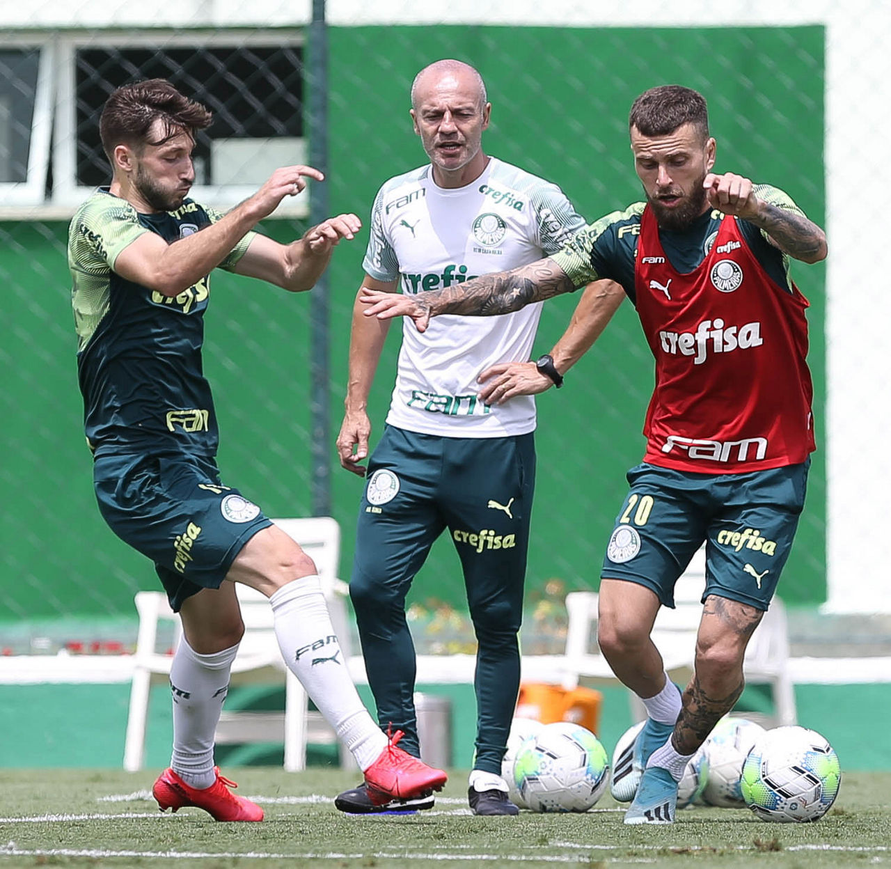 No campo, a comissão do treinador Abel Ferreira comandou atividades técnicas. Na primeira, seis jogadores contra seis em dimensões reduzidas com ênfase em aproximação, posse de bola e marcação. Em seguida, com o mesmo número de componentes, mas com duas balizas com goleiros.