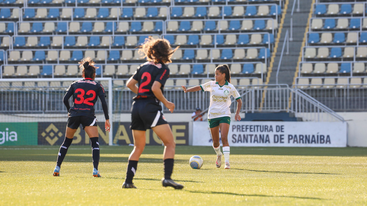 O Verdão voltou para o segundo tempo com alterações e continuou com o ritmo ofensivo. Aos três minutos, Taina Maranhão recebeu de Brena, invadiu a área, bateu cruzado e parou na arqueira. Com 15, Amanda tentou de cabeça e a bola foi pela linha de fundo.