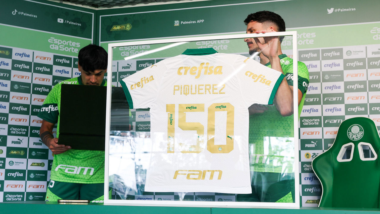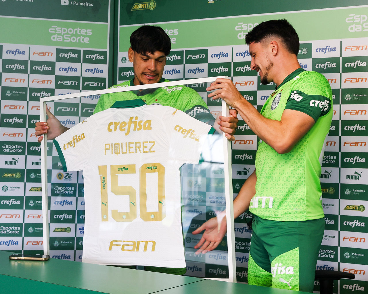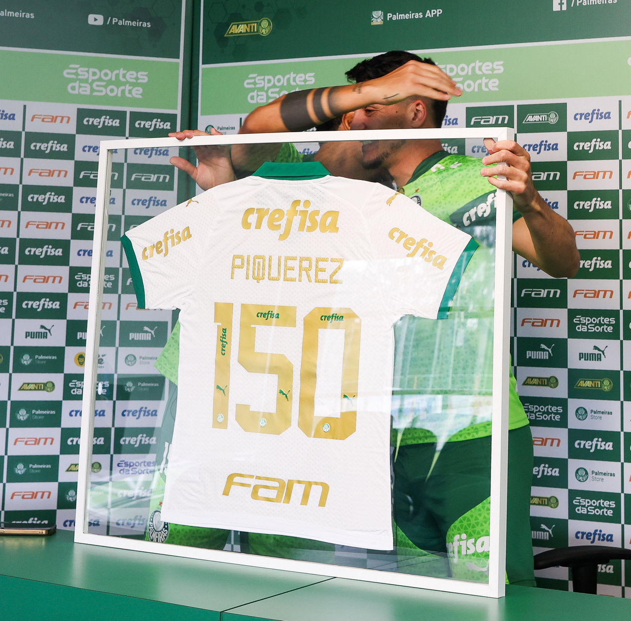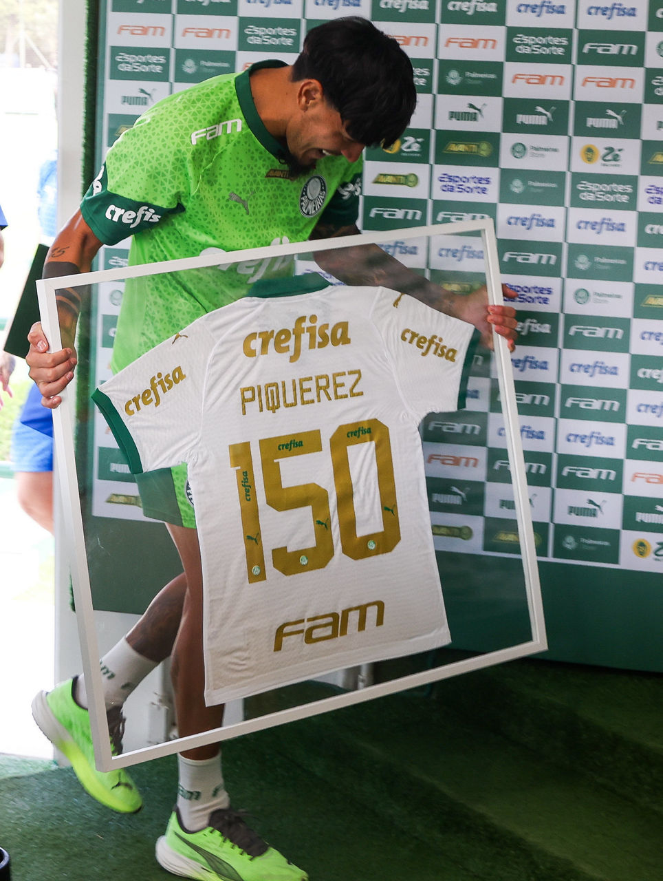 Desde 2021 no Palmeiras, Piquerez completou 150 duelos pelo clube na goleada por 5 a 0 sobre o Liverpool-URU, na quinta (09). De volta à Academia, ele recebeu uma placa e uma camisa enquadrada das mãos de Gustavo Gómez, seu amigo pessoal e estrangeiro com mais partidas na história alviverde, com 296. “É uma sensação maravilhosa. Quando cheguei aqui, nem imaginava acontecer tudo o que aconteceu. Em menos de três anos, ganhei muitos títulos e virei um jogador importante. Estou batendo a marca de 150 jogos, que é um feito relevante. Feliz por fazer parte deste grupo, desta Terceira Academia, e esperamos trazer ainda mais alegrias para os torcedores”, disse Pique, que soma também 11 gols e 13 assistências e já é o uruguaio com mais embates e mais vitórias da história do Palmeiras – além disso, é o lateral-esquerdo com mais confrontos em Libertadores pelo Maior Campeão do Brasil, com 26.