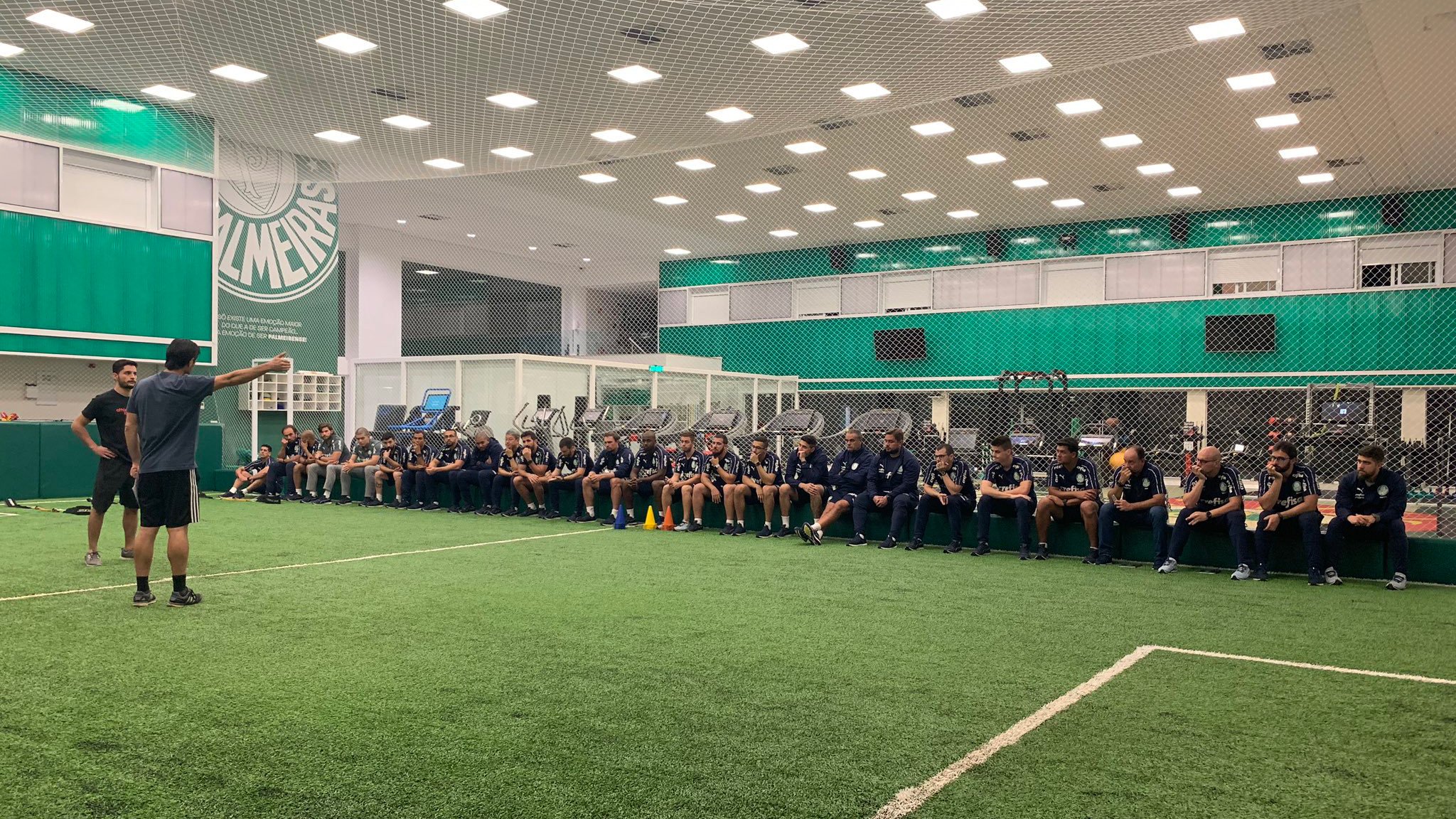 Cerca de 30 profissionais do Núcleo de Saúde e Performance do Palmeiras (fisiologistas, fisioterapeutas, preparadores físicos e treinadores de goleiros das categorias de base e da equipe profissional) estão recebendo a segunda etapa do método de treino funcional da Athletic Lab. O primeiro estágio ocorreu em março do ano passado, também no centro de excelência da Academia de Futebol.
