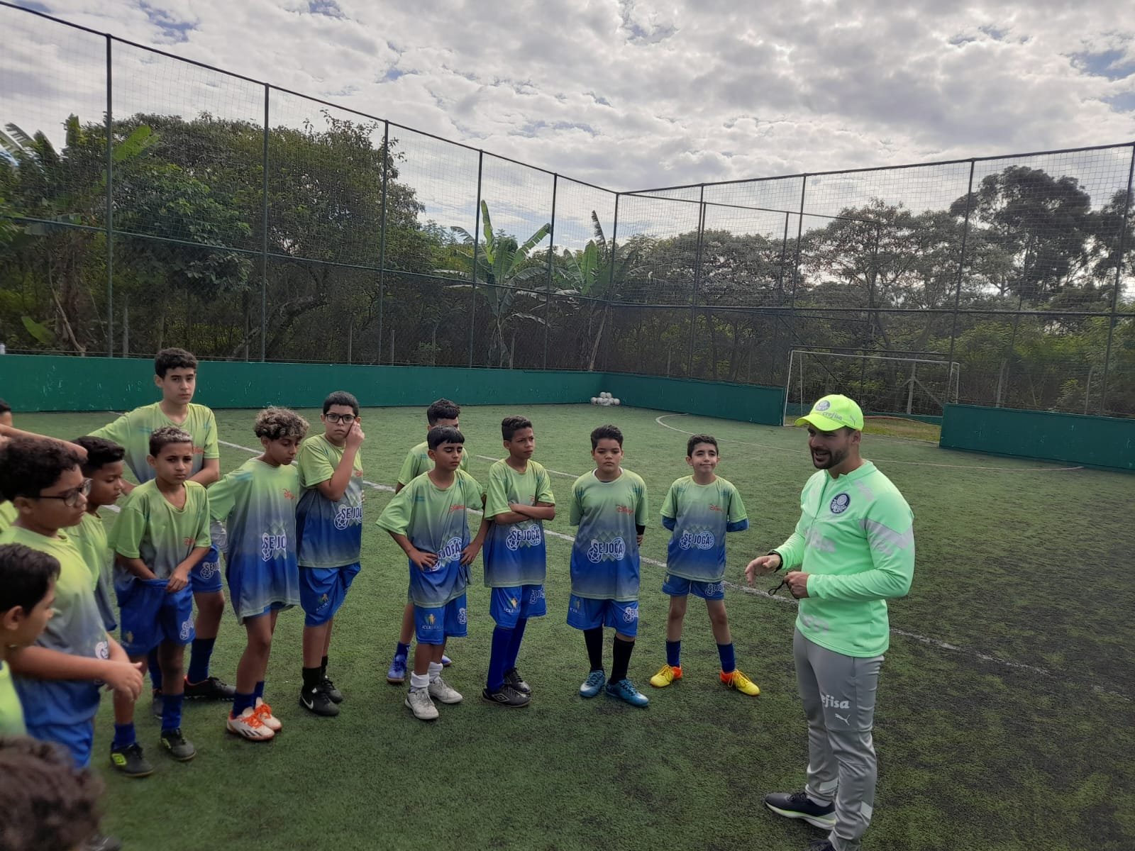 Após chegarem à Academia de Futebol 2, os visitantes fizeram um tour pelo CT, tendo acesso aos espaços utilizados pelos atletas da Base alviverde. Os jovens, então, realizaram uma atividade com bola, sob orientações do preparador de goleiros Vitor Rafael. Os educandos do projeto ainda ouviram de Ricardo Barros, assistente social do Verdão, a respeito de importantes processos relacionados à formação socioesportiva dos atletas palmeirenses e receberam um kit lanche.
