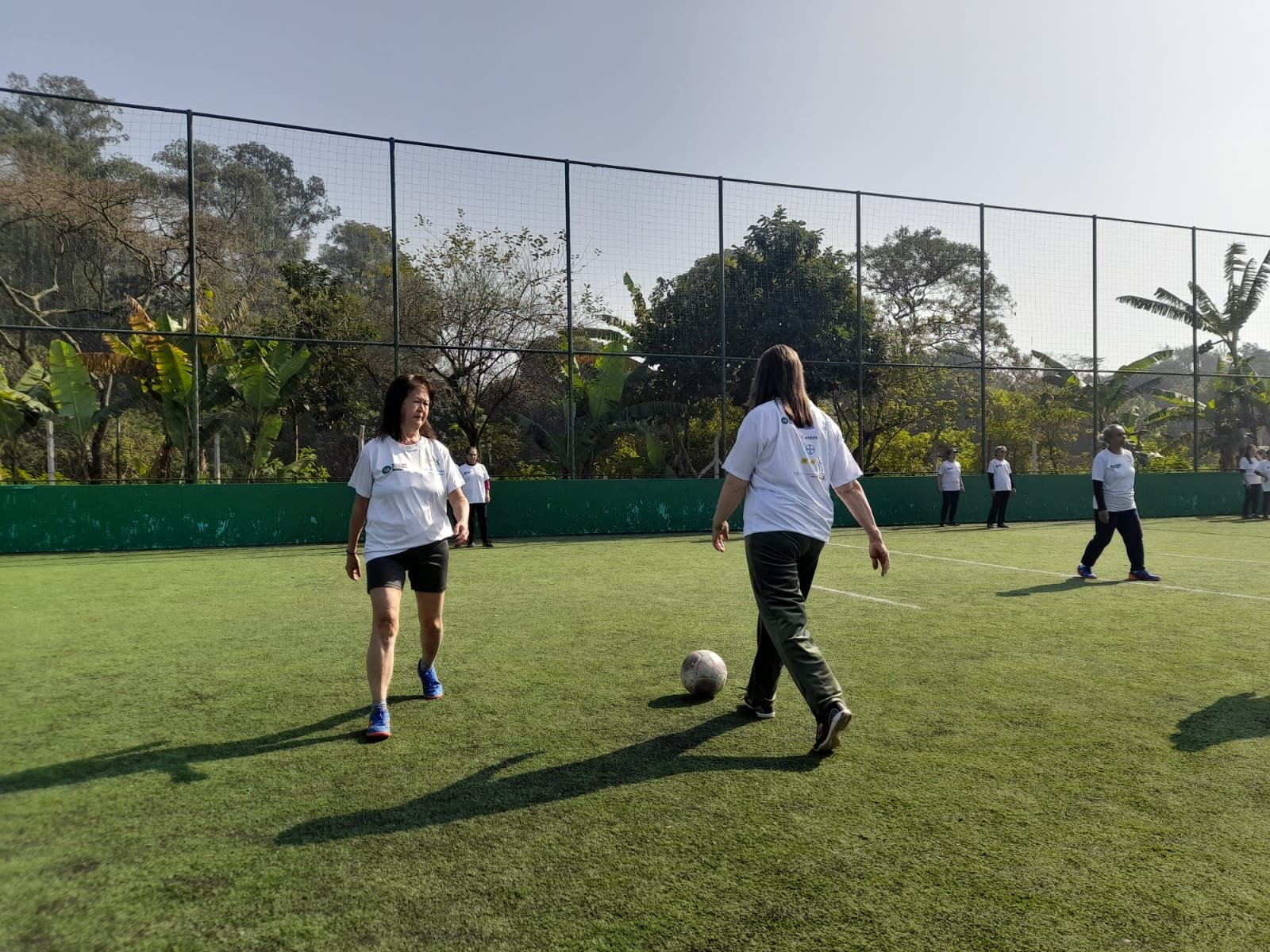Atividade em campo com visitantes da Walking Football Brasil (Foto: Divulgação)