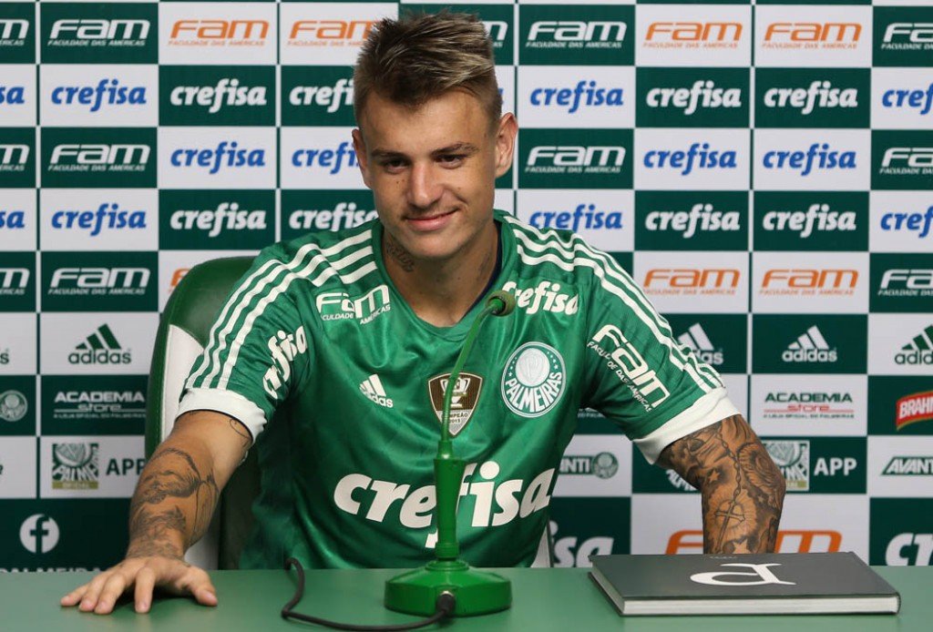 “A expectativa é muito boa de vir para cá, assim como conversei com os meus familiares. O Palmeiras é um dos maiores times do Brasil e do mundo. Espero honrar esta camisa, afinal estou em um time grande e o Palmeiras pode contar comigo”, disse. “Fiquei muito feliz quando eu soube que o Palmeiras queria assinar comigo por cinco anos. Isso é fruto do meu trabalho no dia a dia, dos meus pais, da minha esposa e do meu empresário também. Espero ajudar o Palmeiras”, emendou o reforço, que estampará o número 23 na camisa em homenagem ao filho Ryan, nascido no dia 23 de novembro do ano passado.