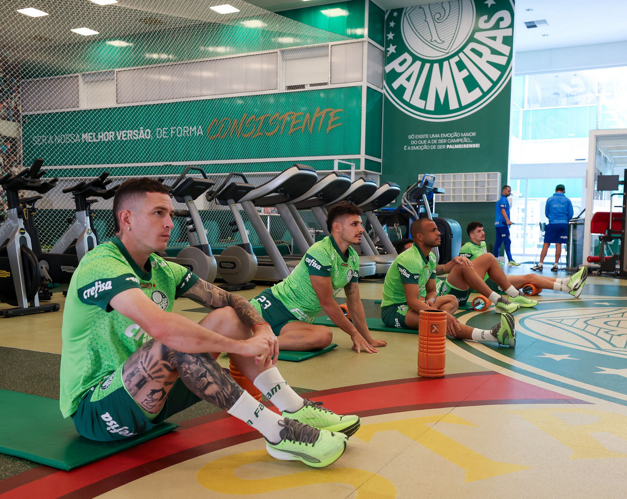 Na parte interna do centro de excelência, os titulares fizeram atividades de recovery como musculação, botas pneumáticas, massagem e piscina com água quente. O restante foi a campo e realizou trabalhos técnicos e táticos sob os olhares da comissão de Abel Ferreira.