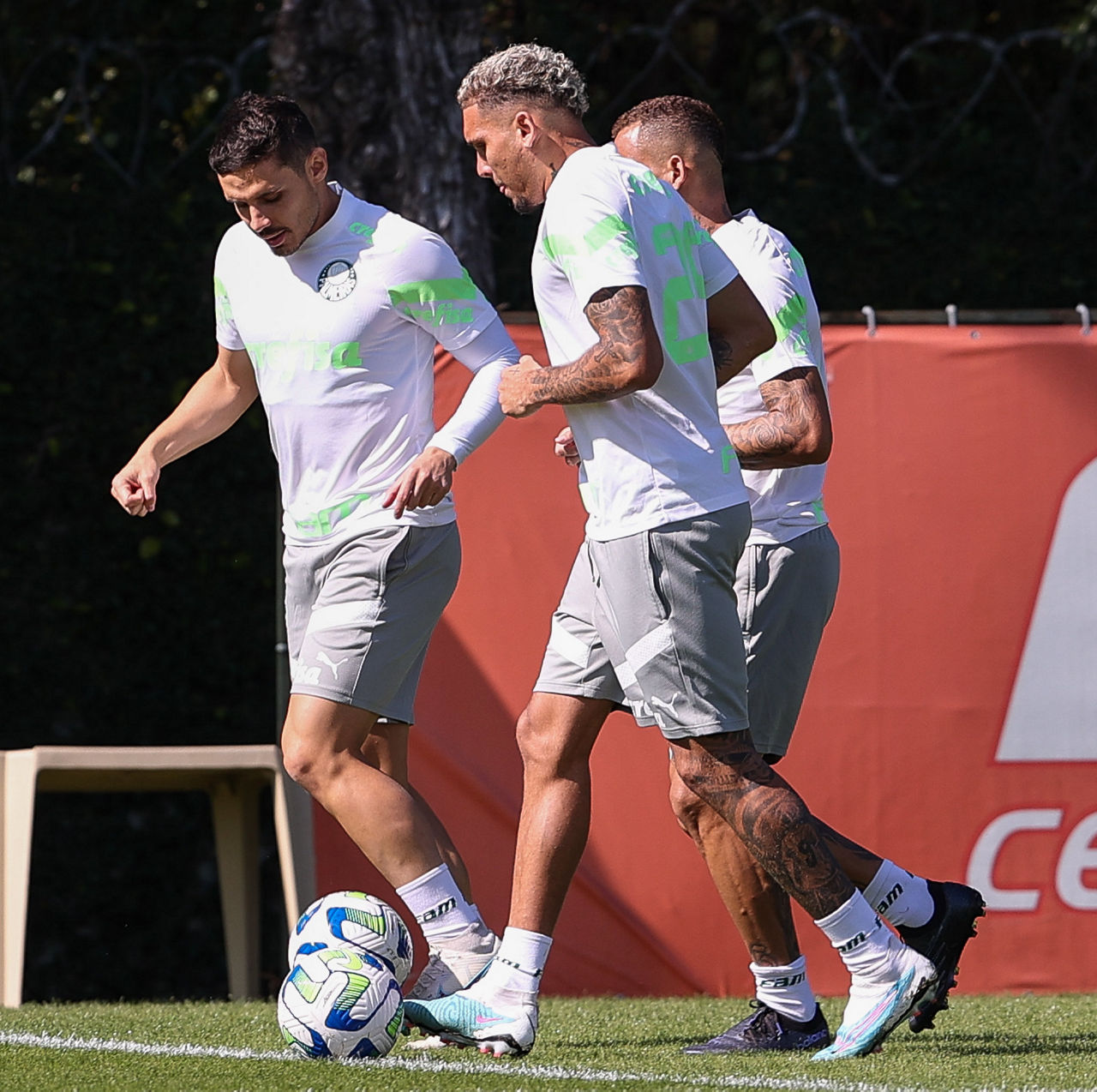 O Palmeiras começou na manhã desta quinta-feira (22), na Academia de Futebol, a preparação para o confronto com o Botafogo, no domingo (25), às 16h, no Allianz Parque, pela 12ª rodada do Campeonato Brasileiro. As novidades ficaram por conta de Weverton, Raphael Veiga e Rony, de volta ao clube após defenderem a Seleção Brasileira. Rony e Piquerez, que apesar de cortado do último duelo já havia se reapresentado junto à delegação em Salvador (BA), ficaram na parte interna, enquanto o goleiro e o meia foram a campo e trabalharam normalmente.