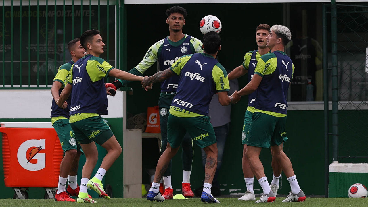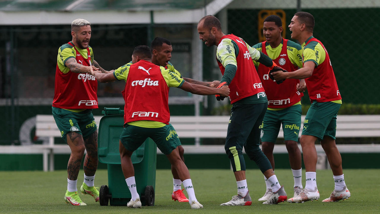 Após ter realizado trabalhos técnicos pela manhã, o elenco do Palmeiras almoçou no refeitório do centro de excelência, descansou e voltou, às 17h, ao gramado da Academia de Futebol para trabalhos coletivos e lúdicos com bola.