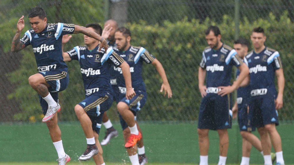 Cesar Greco/Ag. Palmeiras/Divulgação _ O elenco alviverde volta a treinar hoje à tarde, às 17hO Palmeiras retomou as atividades na manhã desta segunda-feira (11), no Spa Sport Resort, em Itu-SP. Debaixo de uma chuva fina, o elenco foi a campo e fez um trabalho físico de agilidade e velocidade.