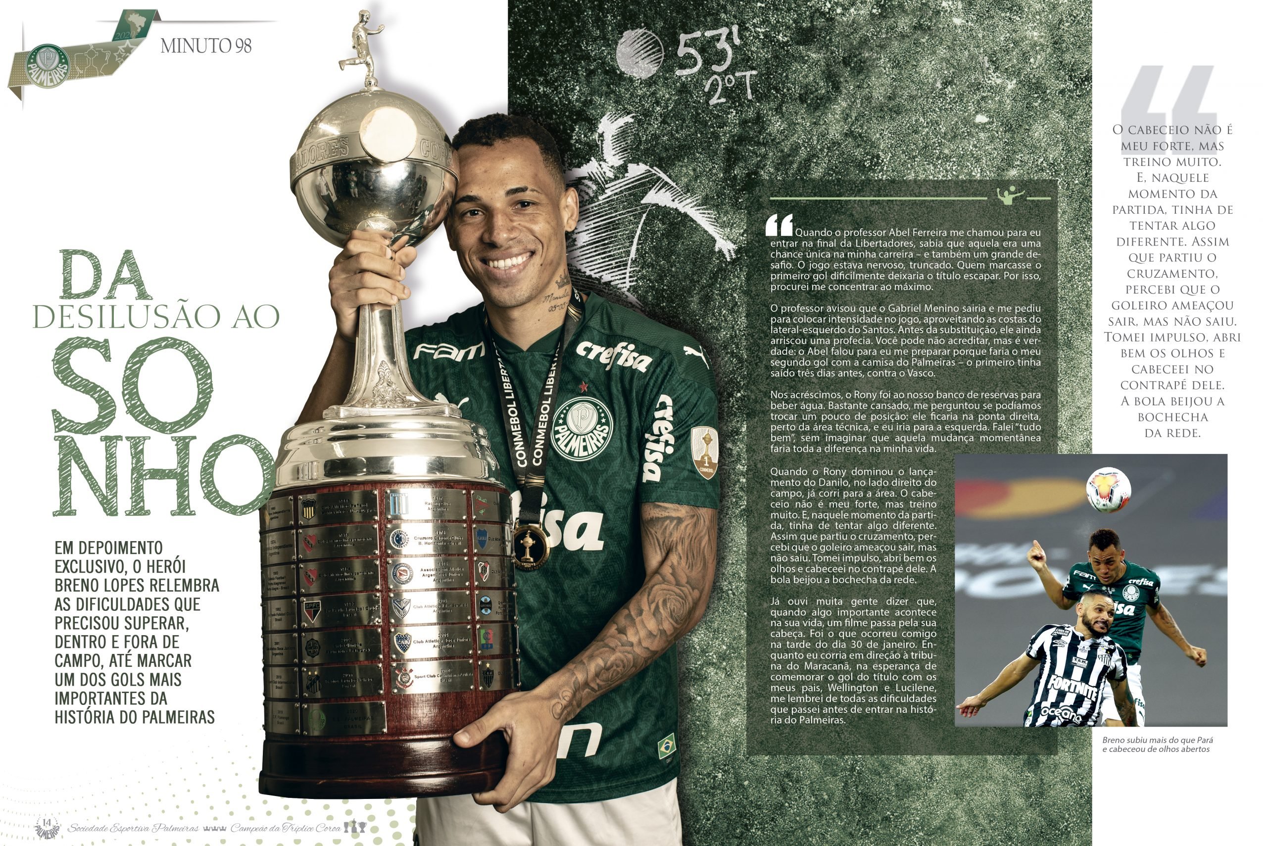 A revista possui 100 páginas de muito conteúdo, a maioria exclusivo. Serão fotos, bastidores e histórias emocionantes que marcaram as conquistas alviverdes, como um texto em primeira pessoa do herói do título da Libertadores, o atacante Breno Lopes, contando sua trajetória no futebol até chegar ao minuto 98 da decisão do Maracanã, momento especial para ele. Ainda sobre a conquista da América, os 11 sócios Avanti que foram presentados com uma credencial para assistir ao jogo no Rio de Janeiro detalham como foi viver essa experiência única.