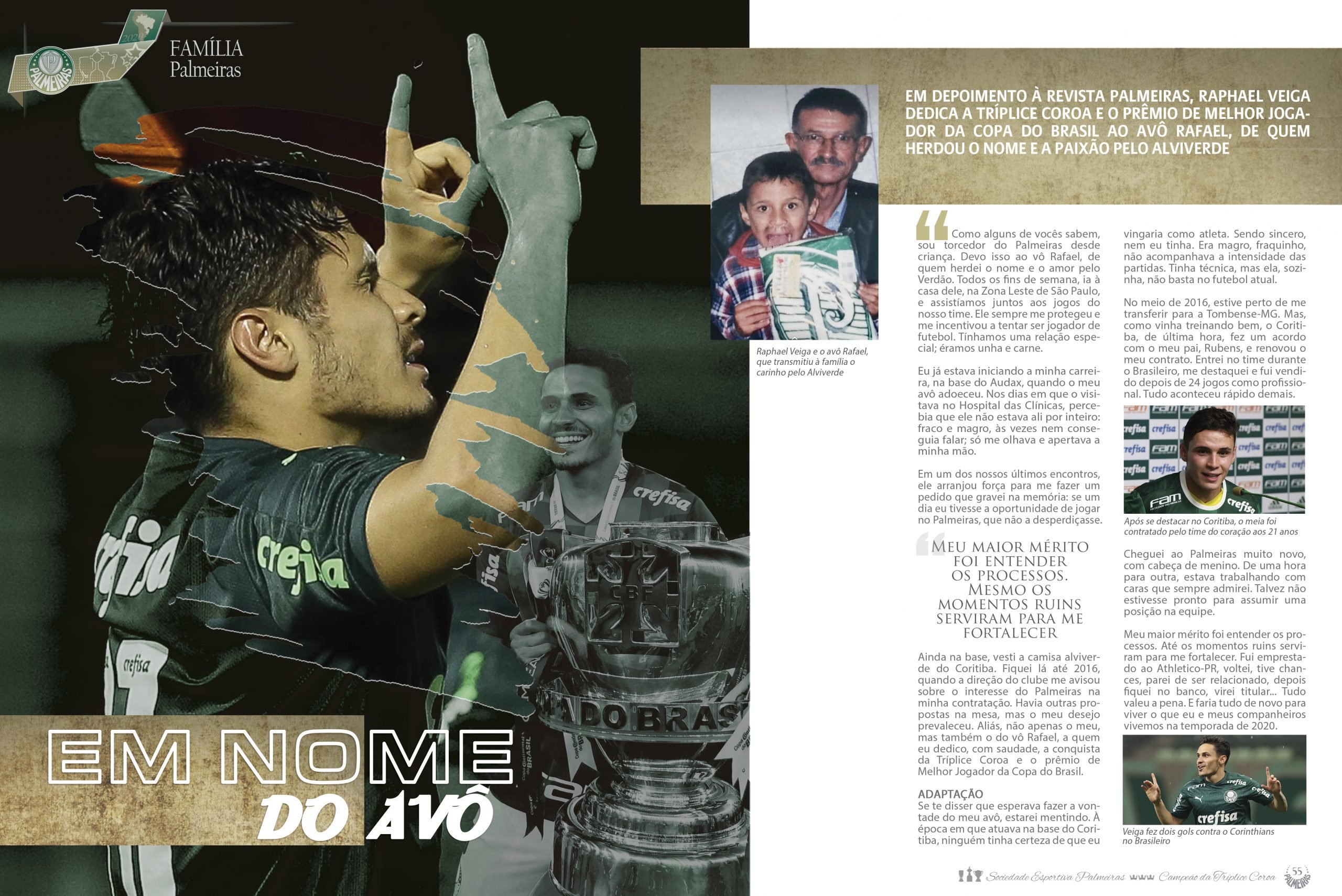 O melhor jogador da Copa do Brasil, o meia Raphael Veiga, também conta em primeira pessoa sua caminhada com a equipe até o quarto título do Verdão na competição. A edição histórica da Revista Palmeiras trará ainda os pôsteres dos títulos conquistados na temporada passada.