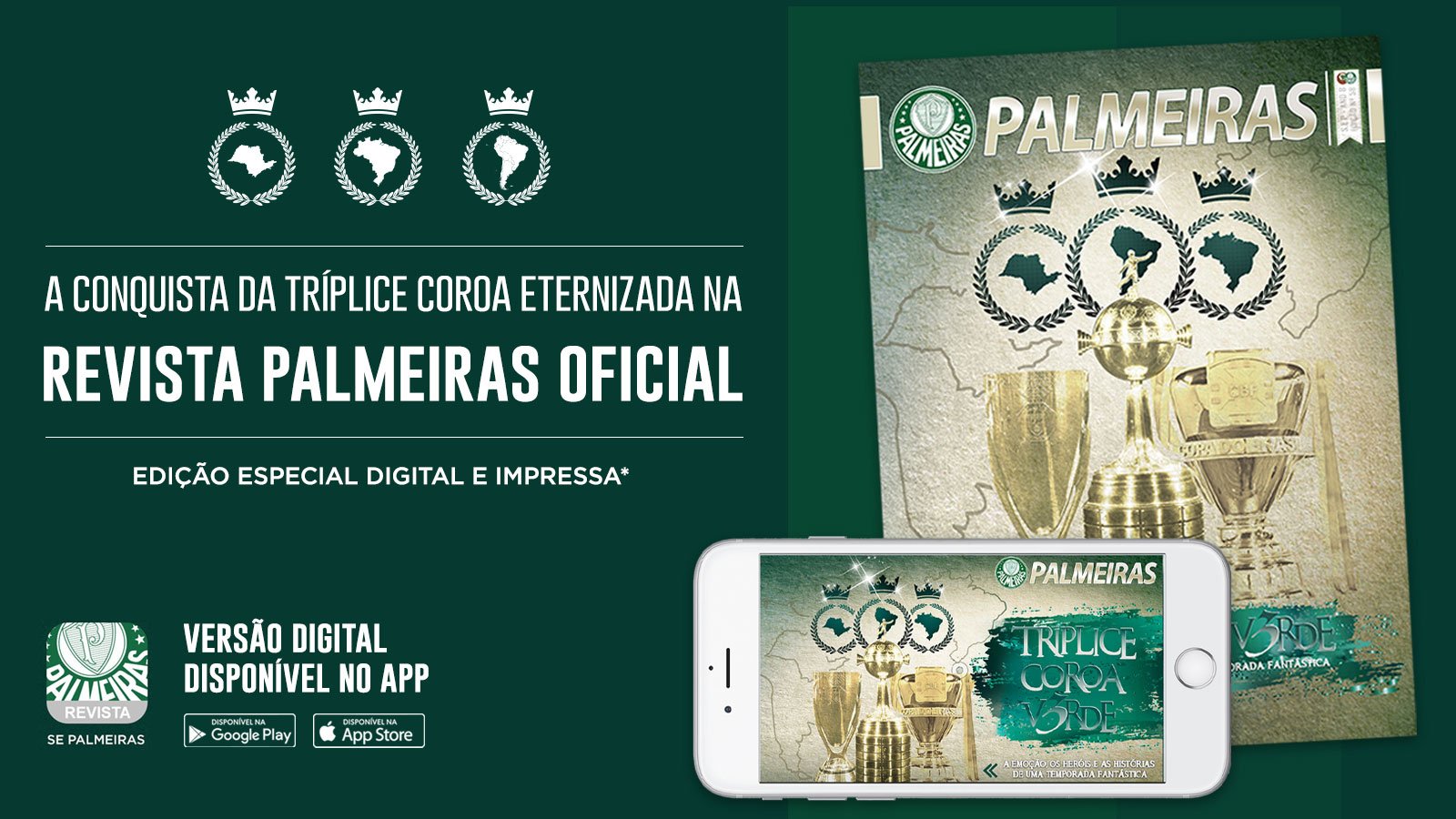 A edição especial também está disponível em versão digital, no aplicativo da Revista Palmeiras (na Apple Store e no Google Play). Nela, você encontra, além do conteúdo da revista impressa, vídeos com gols e bastidores da histórica temporada.
