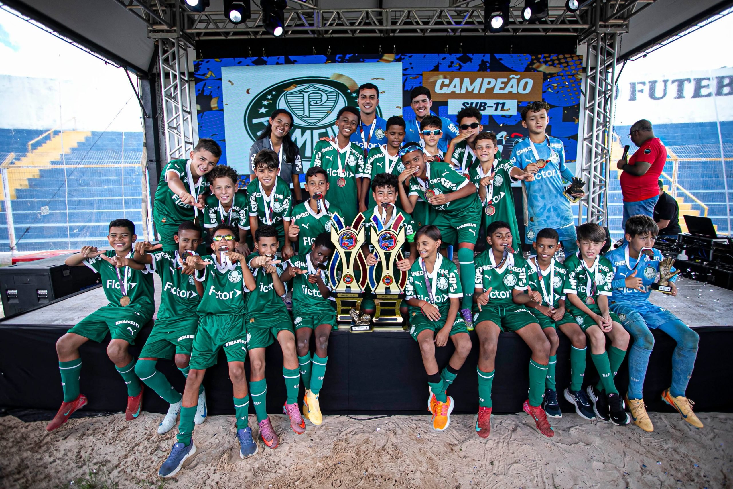 O Palmeiras é campeão da edição de 2026 da Sanca Cup nas categorias Sub-10 e Sub-11! Neste domingo (25), os times venceram suas finais no torneio realizado em São Carlos, ficando com a taça. O Sub-10 derrotou o LG Sports por 4 a 2, com gols de Samuel Cardoso, Rodrigo Filho, Enzo Arruda e Diogo Calebe, enquanto o Sub-11 goleou o GP Soccer por 10 a 0, com tentos de Joaquim Lucas, João Mariano (três vezes), Davizinho (duas vezes), Ikaro Alexandre, Ronaldo, Rennan Cayque e Arthur Vicente.