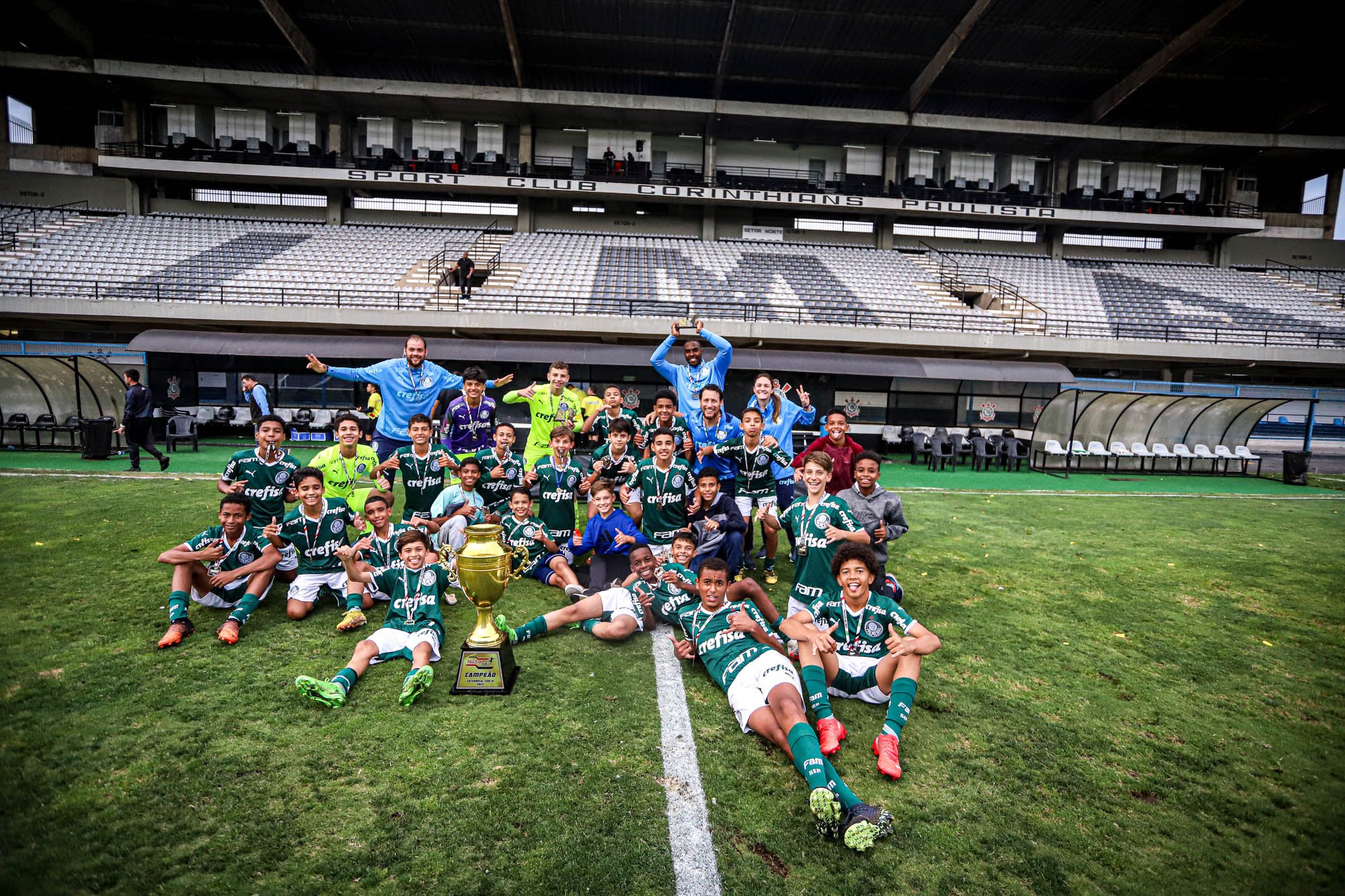 O Palmeiras é campeão da Paulista Cup Sub-12! Nesta sexta-feira (25), o time alviverde derrotou o Corinthians por 2 a 0, no Parque São Jorge, e conquistou o título da competição. Os gols do triunfo decisivo foram anotados por Matheus Campos, de falta, e Ruan.