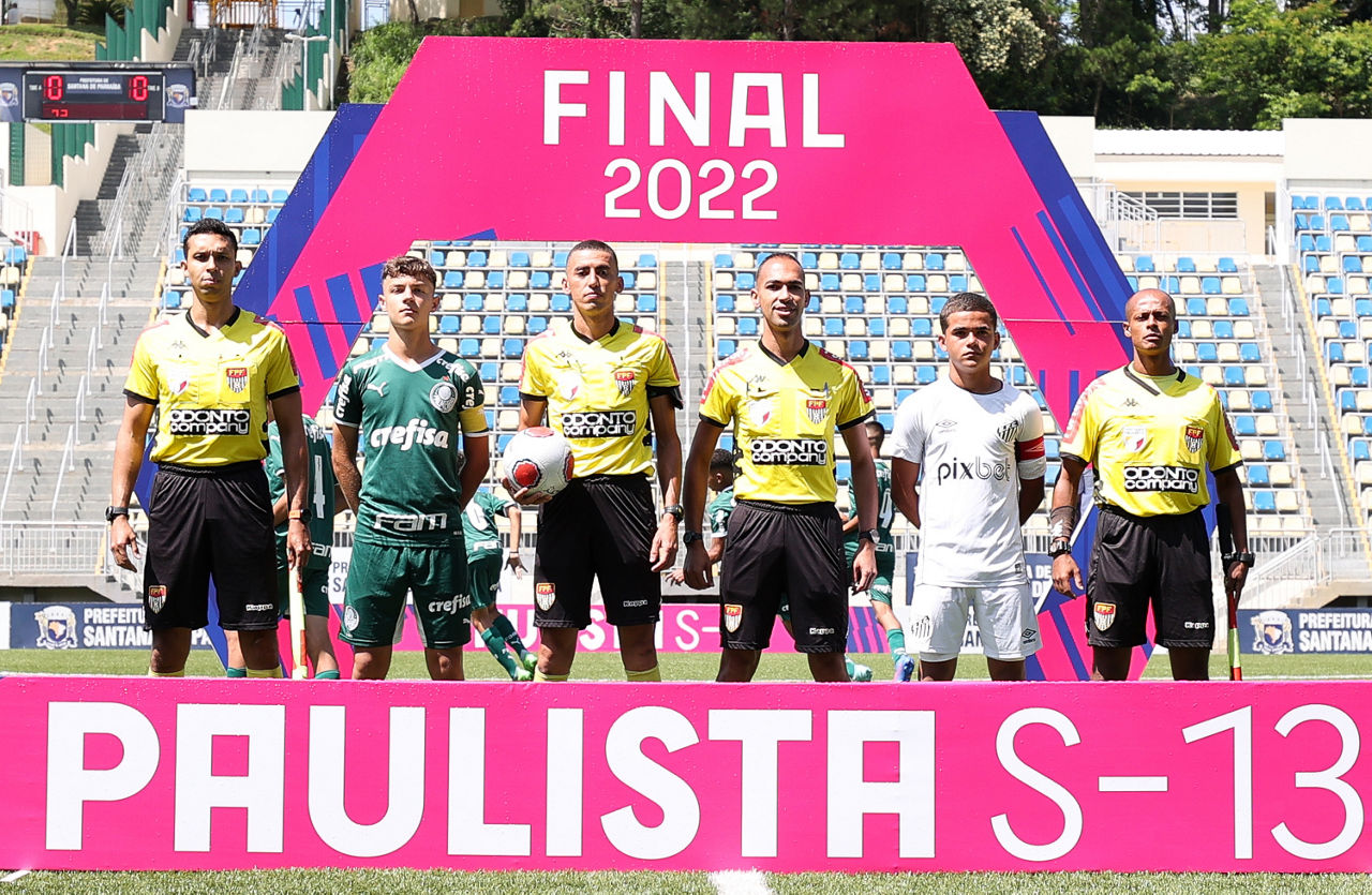 O time Sub-13 do Palmeiras é campeão do Campeonato Paulista de 2022! Neste sábado (17), a equipe alviverde derrotou o Santos nos pênaltis, após empate por 0 a 0 no tempo normal, no Estádio Municipal de Santana de Parnaíba, e ficou com o título – no primeiro jogo da final, os times também ficaram no 0 a 0.