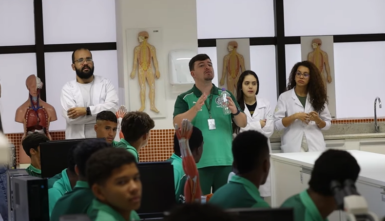 Acompanhados de assistentes sociais e pedagogos do Verdão, os atletas ouviram uma palestra de uma professora da FAM e puderam manusear peças em tamanho real de estruturas musculares e ósseas. Na imersão, os jogadores puderam compreender os processos de hipertrofia e regeneração, além de receberem informações valiosas sobre prevenção de lesões.