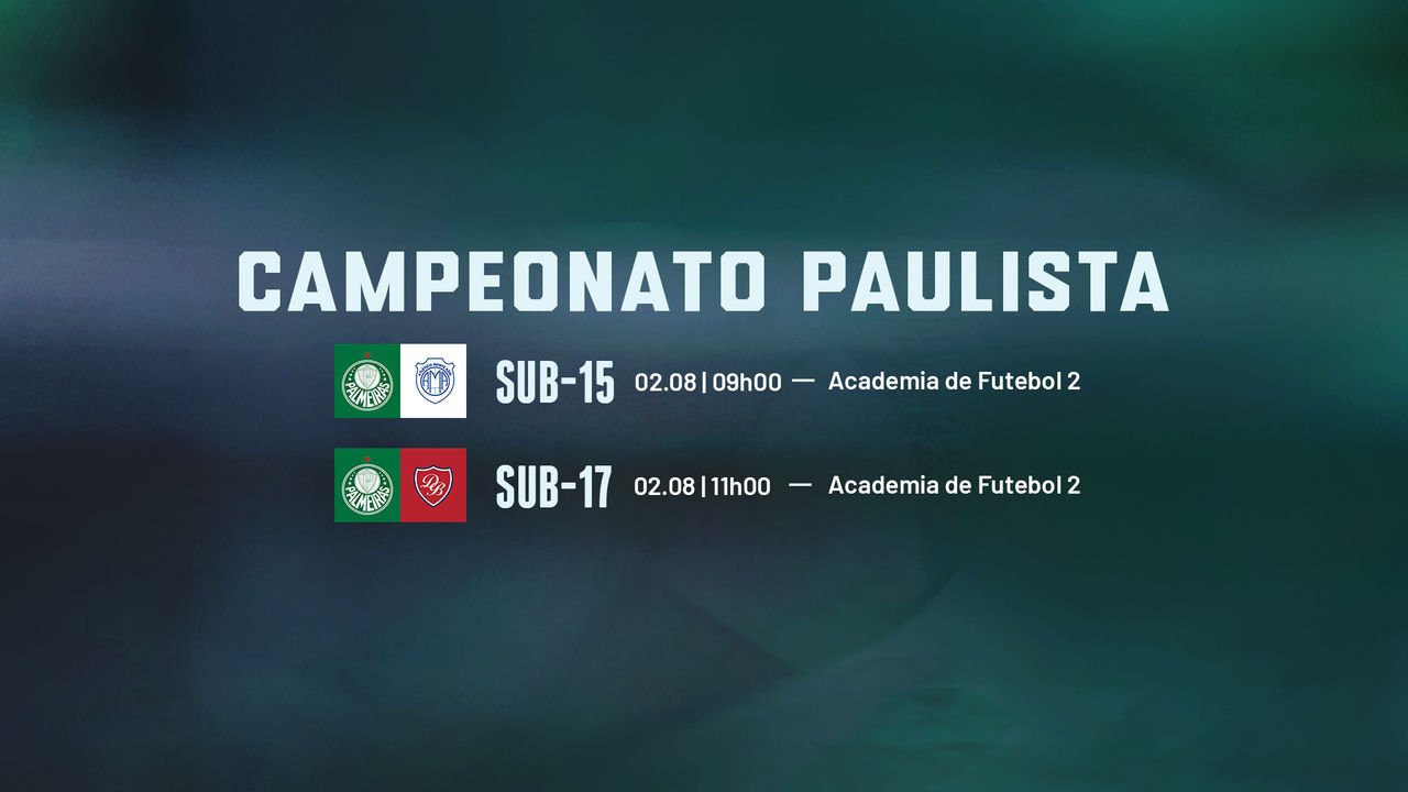 Os times Sub-15 e Sub-17 do Palmeiras entram em campo neste sábado (02), na Academia de Futebol 2, em Guarulhos, pela quarta rodada da segunda fase do Campeonato Paulista. O Sub-15 duela com o Monte Azul, às 09h (de Brasília), enquanto o Sub-17 mede forças com o Desportivo Brasil, às 11h.