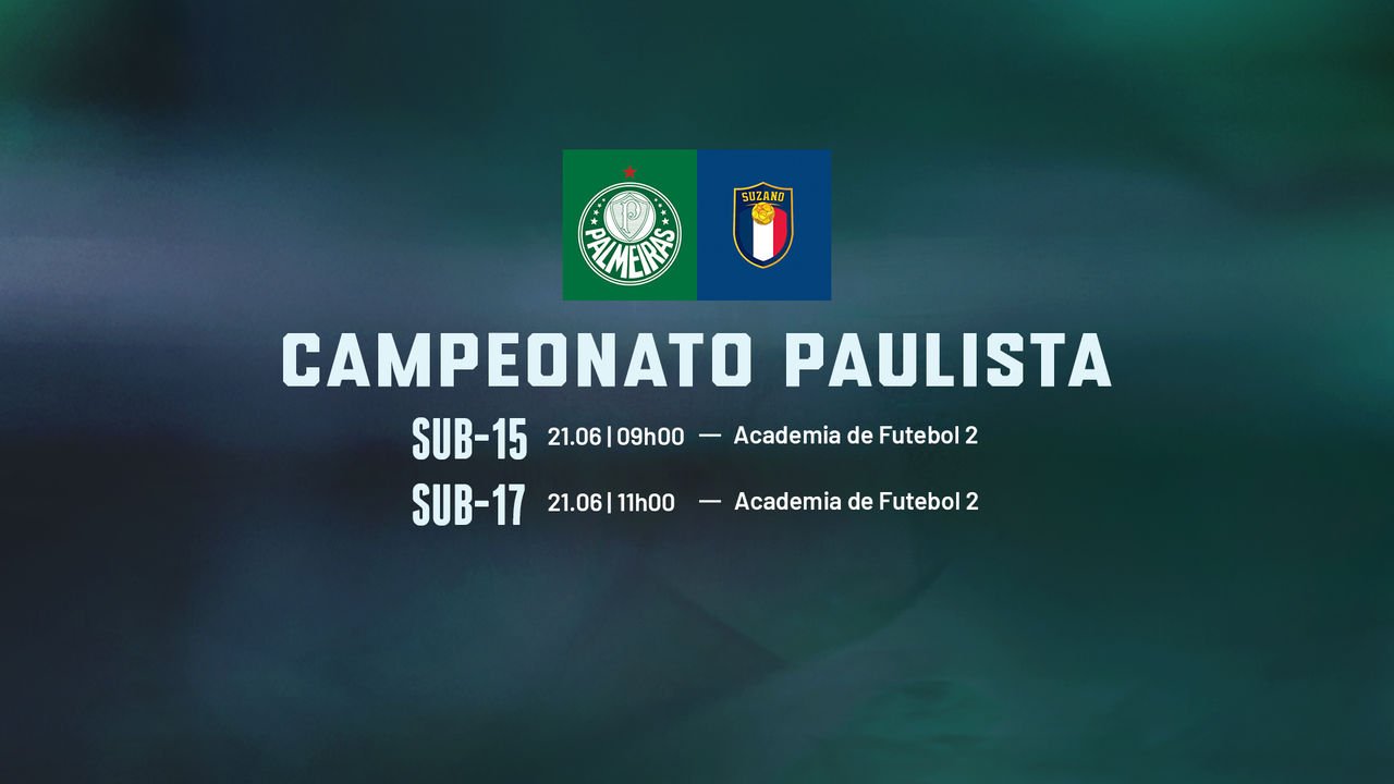 Os times Sub-15 e Sub-17 do Palmeiras terão pela frente o União Suzano, neste sábado (21), na Academia de Futebol 2, em Guarulhos, pela décima e última rodada da primeira fase do Campeonato Paulista. O Sub-15 entra em campo às 09h (de Brasília), enquanto a bola rola para o Sub-17 a partir das 11h.