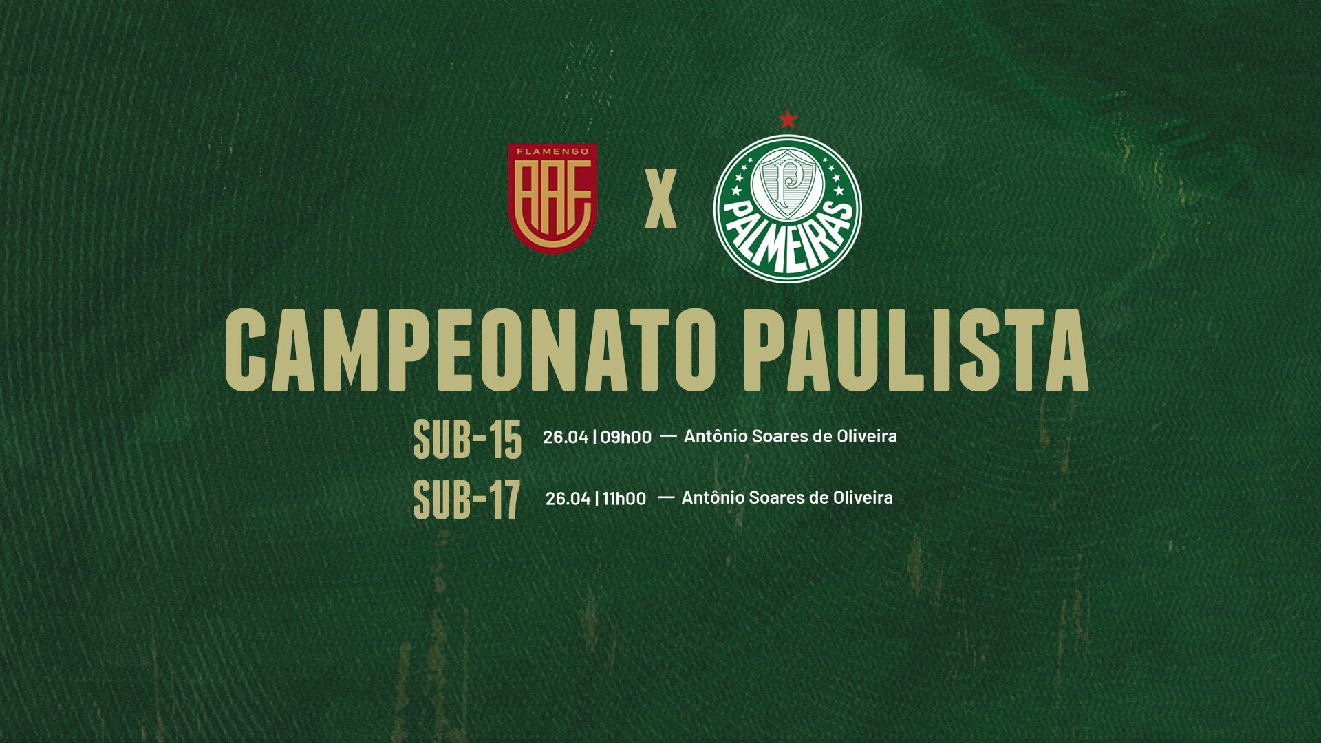 Os times Sub-15 e Sub-17 do Palmeiras derrotaram o Flamengo-SP, neste sábado (26), no Estádio Antônio Soares de Oliveira, em Guarulhos-SP, pela terceira rodada da primeira fase do Campeonato Paulista. O Sub-15 venceu por 2 a 0, com gols de Kauê Richard e Kaiki, enquanto o Sub-17 triunfou por 1 a 0, com tento de Eduardo.