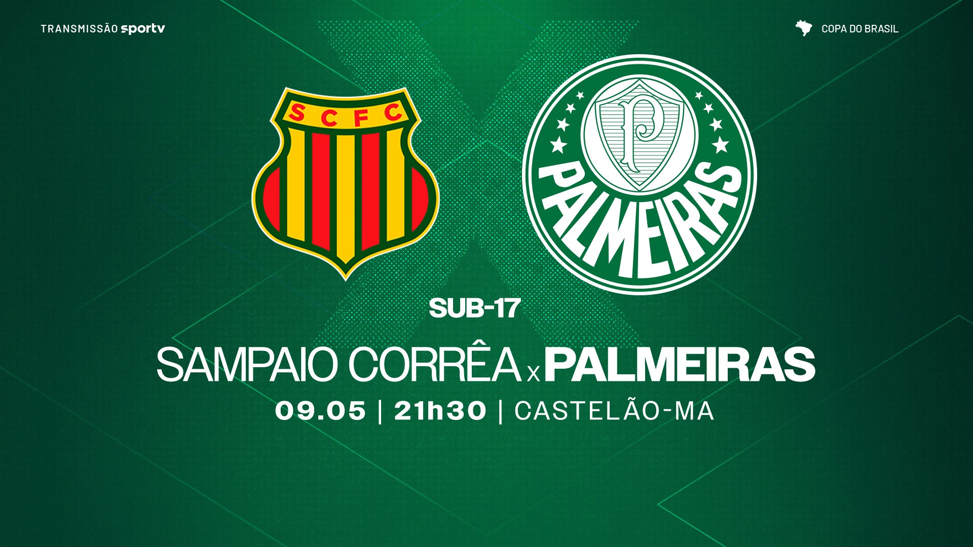 O time Sub-17 do Palmeiras terá pela frente o Sampaio Corrêa, nesta terça-feira (09), às 21h30 (de Brasília), no Estádio Castelão, em São Luís-MA, na partida de ida das quartas de final da Copa do Brasil da categoria. O confronto terá transmissão do SporTV.