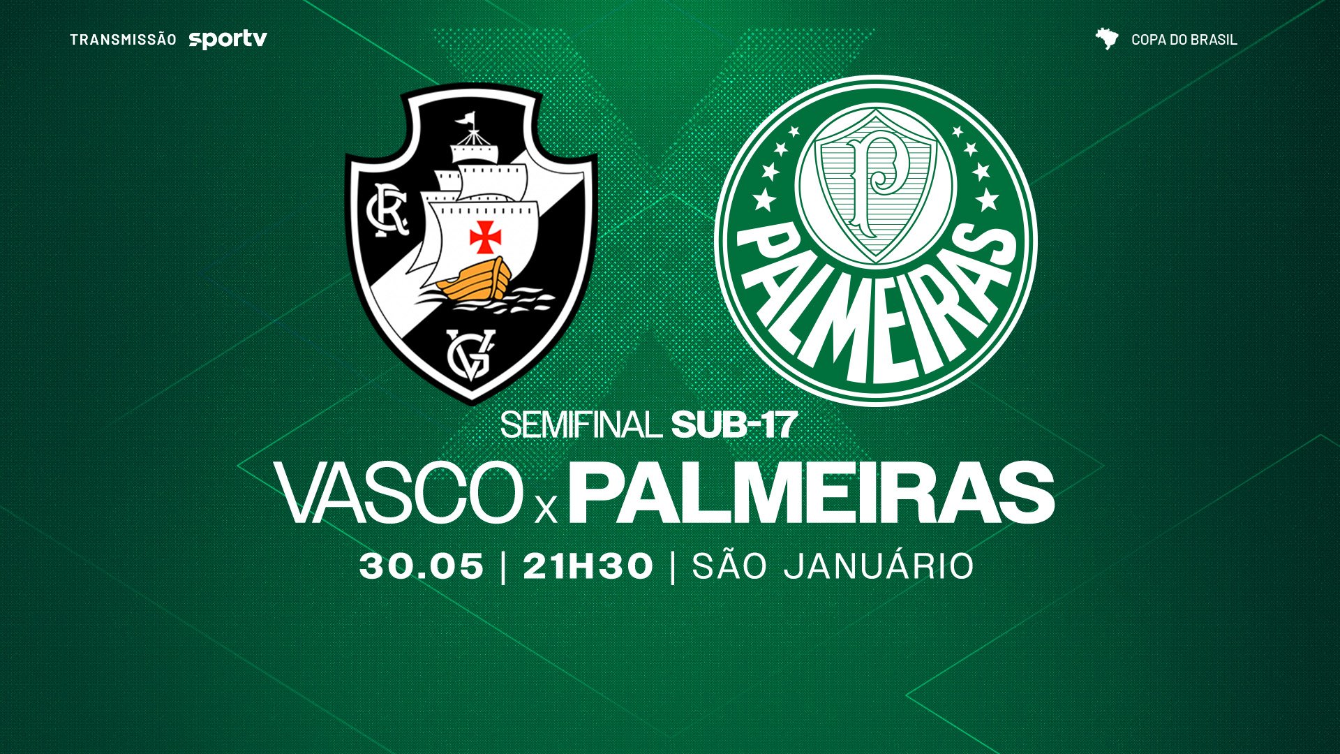 O time Sub-17 do Palmeiras terá pela frente o Vasco, nesta terça-feira (30), às 21h30 (de Brasília), no Estádio São Januário, no Rio de Janeiro-RJ, na primeira partida da semifinal da Copa do Brasil da categoria. O confronto terá transmissão do SporTV.