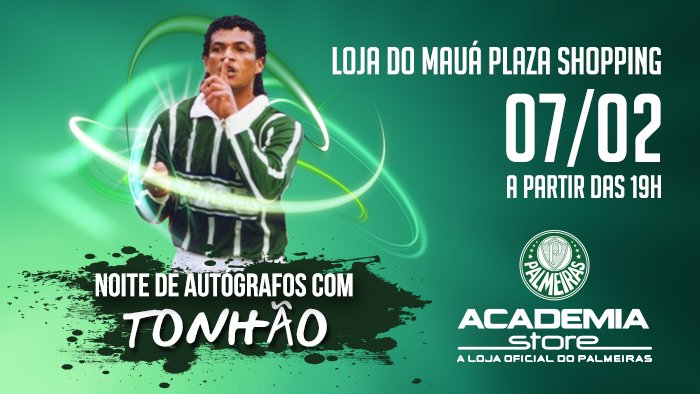 Tonhão convida palmeirenses para noite de autógrafos na Academia Store de Mauá