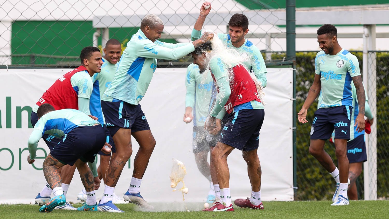 O Palmeiras deu sequência na manhã desta sexta-feira (06), na Academia de Futebol, à preparação para o duelo com o Fluminense, no domingo (08), às 16h, no Allianz Parque, pela quinta rodada do Campeonato Brasileiro. O zagueiro Gustavo Gómez, aniversariante do dia, recebeu cumprimentos pelos 29 anos de idade tanto do elenco quanto do staff e foi ‘agraciado’ também pela tradicional ovada depois do treino. O paraguaio levou a brincadeira na esportiva.