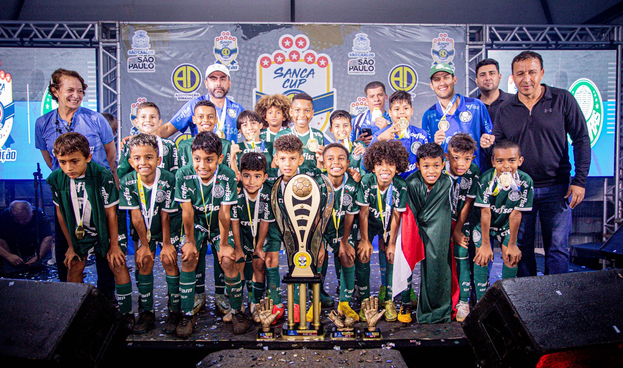 O Palmeiras faturou três taças na sétima edição da Sanca Cup, disputada em São Carlos-SP, que chegou ao fim neste fim de semana. As Crias da Academia levantaram o troféu com as categorias Sub-10, Sub-11 e Sub-12.