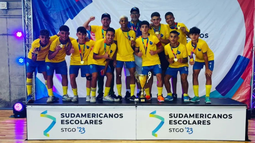 O trio do futsal, composto por Brenno Martins, Osvaldo Mariano e Samuel Enzo, foi campeão dos Jogos Sul-Americanos Escolares com a Seleção Brasileira, em Santiago, no Chile.