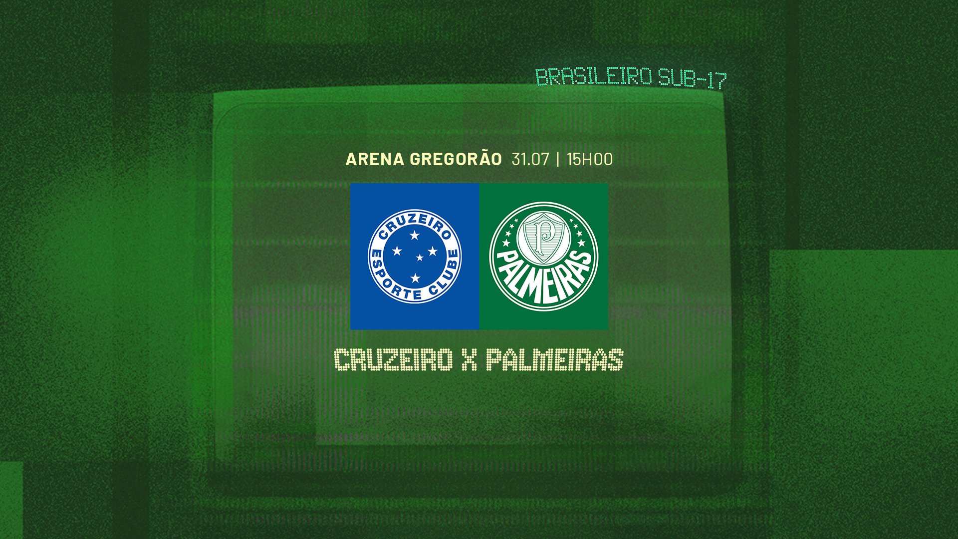 O time Sub-17 do Palmeiras terá pela frente o Cruzeiro, nesta quarta-feira (31), às 15h (de Brasília), na Arena Gregorão, em Contagem-MG, pela quinta rodada do Campeonato Brasileiro da categoria.