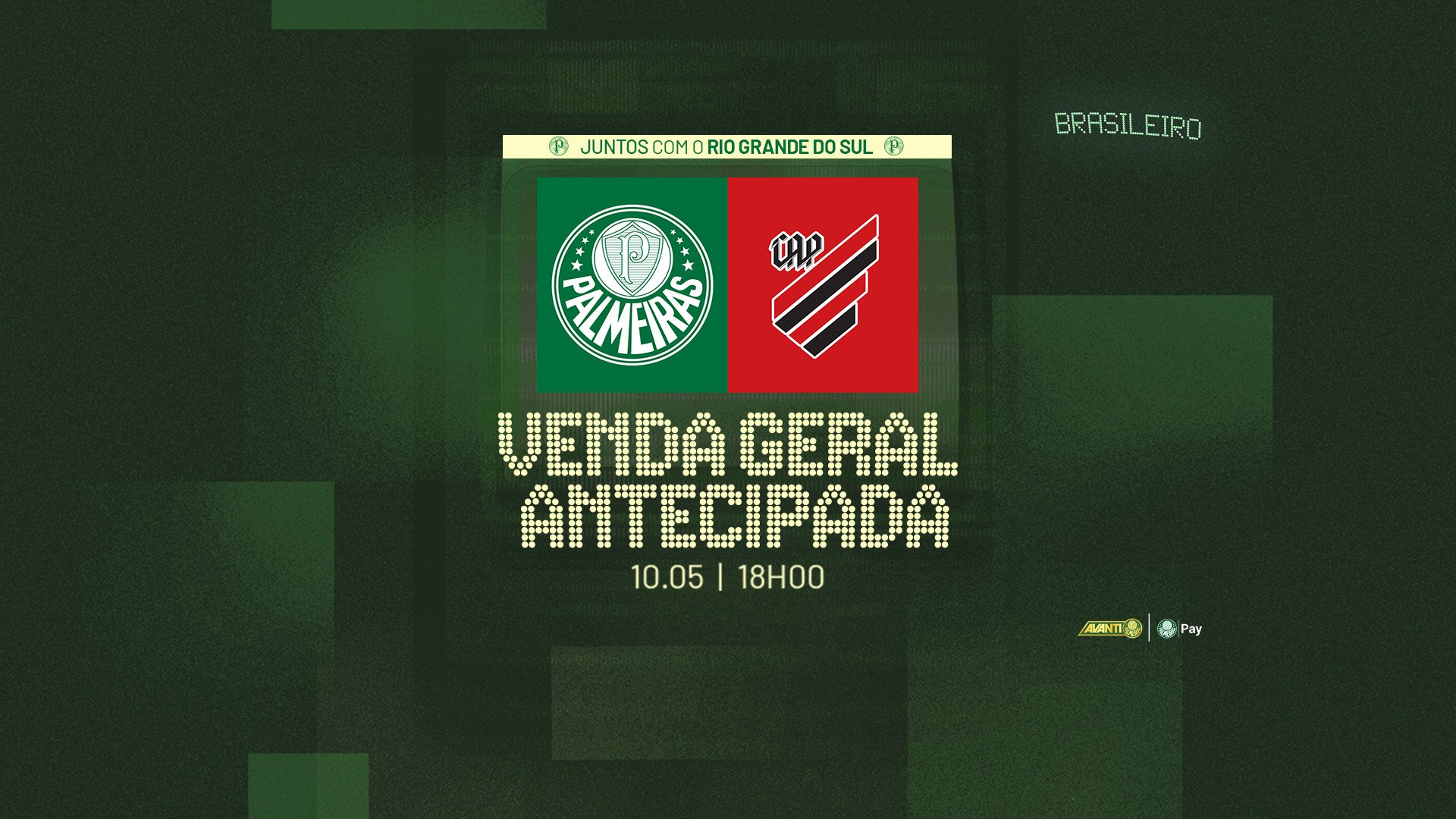 Os ingressos para o jogo contra o Athletico-PR, que ocorrerá no domingo (12), às 16h, na Arena Barueri, em Barueri (SP), pela sexta rodada do Campeonato Brasileiro, estão à venda para todos os torcedores por meio do site www.ingressospalmeiras.com.br. Toda a renda líquida deste confronto será destinada às vítimas das fortes chuvas no Rio Grande do Sul.