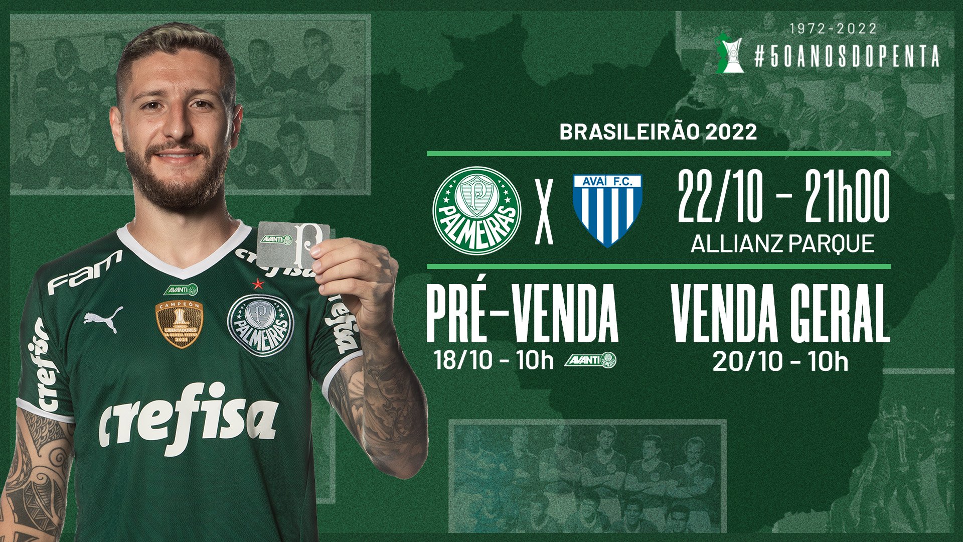 Os ingressos para o jogo contra o Avaí, que ocorrerá no sábado (22), às 21h, no Allianz Parque, pela 33ª rodada do Campeonato Brasileiro, estão à venda para todos os torcedores por meio do site www.ingressospalmeiras.com.br.