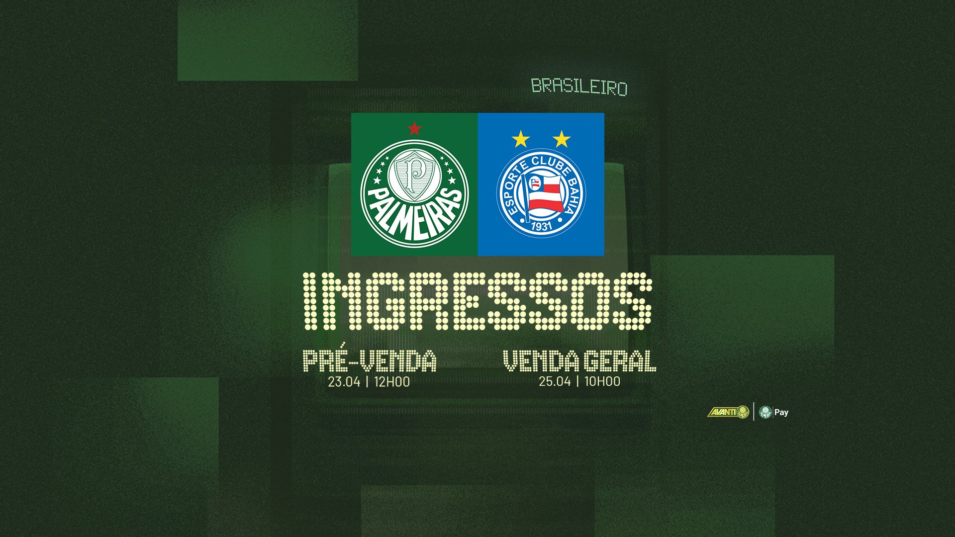 Os ingressos para o jogo contra o Bahia, que ocorrerá no domingo (27), às 18h30, no Allianz Parque, pela sexta rodada do Campeonato Brasileiro, estarão à venda exclusivamente para os sócios-torcedores Avanti a partir desta quarta-feira (23), às 12h, por meio do site www.ingressospalmeiras.com.br.