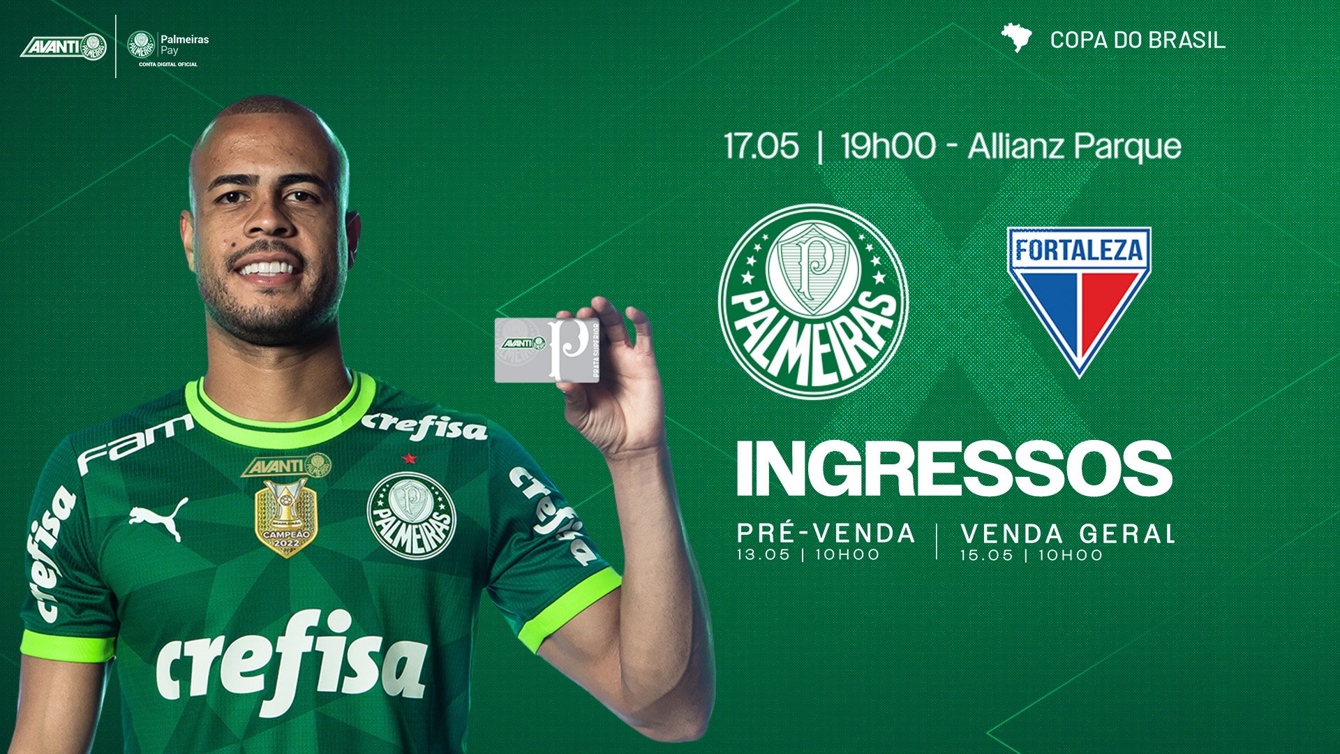 Os ingressos para o jogo contra o Fortaleza, que ocorrerá na quarta-feira (17), às 19h, no Allianz Parque, na ida das oitavas de final da Copa do Brasil, estão à venda exclusivamente para os sócios-torcedores Avanti por meio do site www.ingressospalmeiras.com.br.