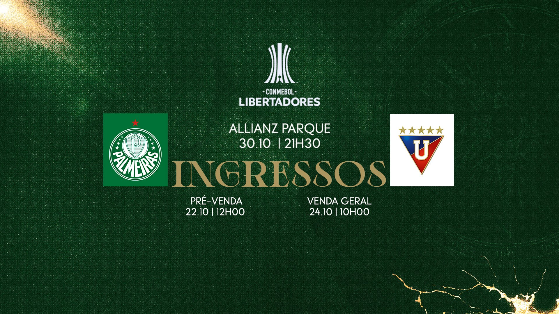 Os ingressos para o jogo contra a LDU-EQU, que ocorrerá na quinta-feira (30), às 21h30, no Allianz Parque, pela partida de volta da semifinal da CONMEBOL Libertadores, estarão à venda exclusivamente para os sócios-torcedores Avanti a partir de quarta (22), às 12h, por meio do site www.ingressospalmeiras.com.br.