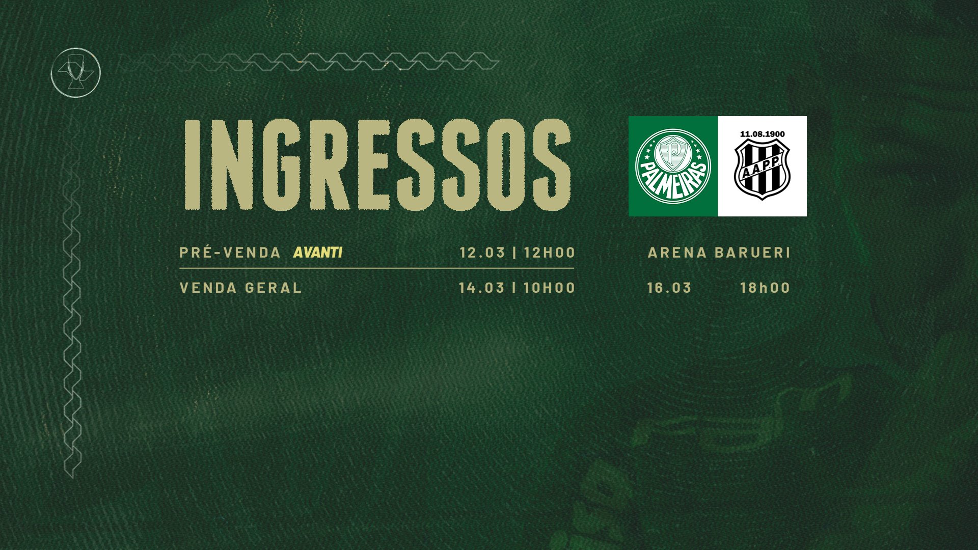 Os ingressos para o jogo contra a Ponte Preta, que ocorrerá no sábado (16), às 18h, na Arena Barueri, em Barueri (SP), pelas quartas de final do Campeonato Paulista, estão à venda para todos os torcedores por meio do site www.ingressospalmeiras.com.br.