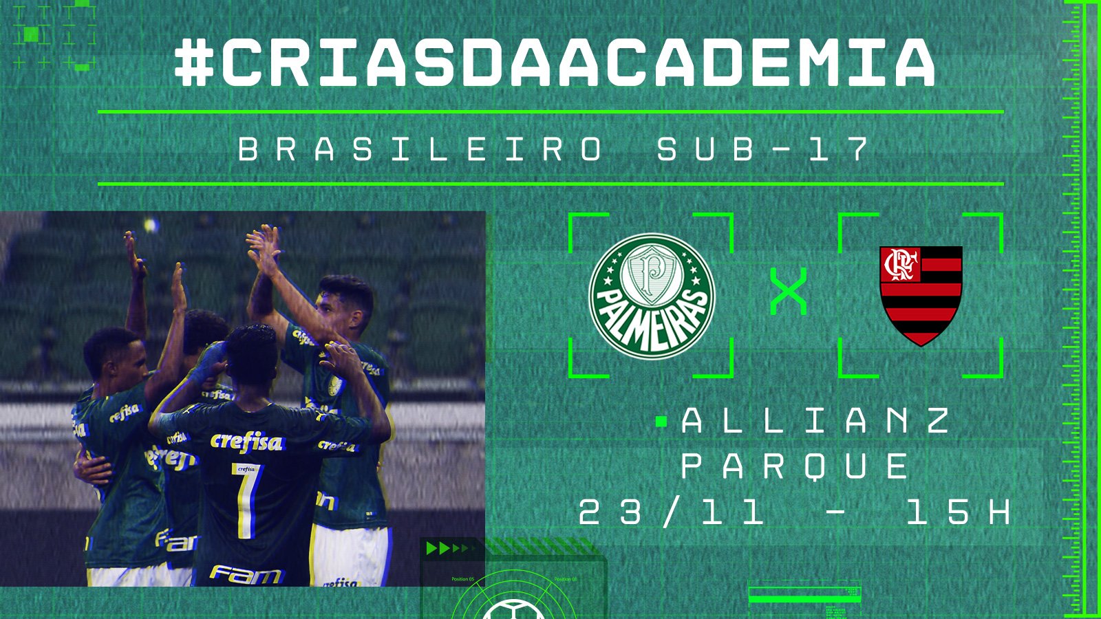 A equipe Sub-17 do Palmeiras mede forças com o Flamengo nesta segunda-feira (23), às 15h, no Allianz Parque, pelo duelo de volta das quartas de final do Campeonato Brasileiro da categoria. A partida será transmitida pelo SporTV.