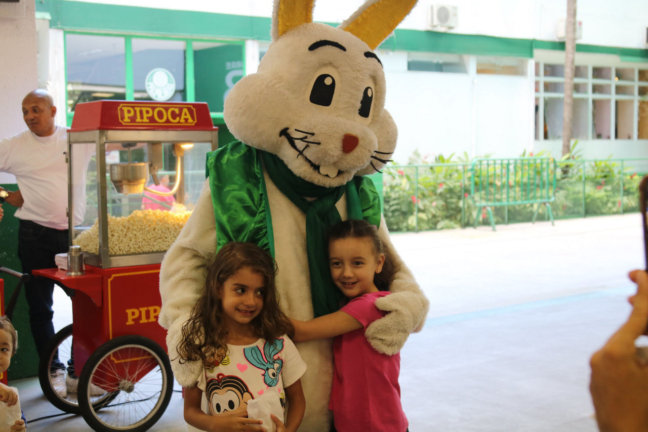 Quem também marcou presença no evento foi o coelhinho, o personagem símbolo da Páscoa, que encantou a criançada, proporcionando muitas fotos na decoração do evento.
