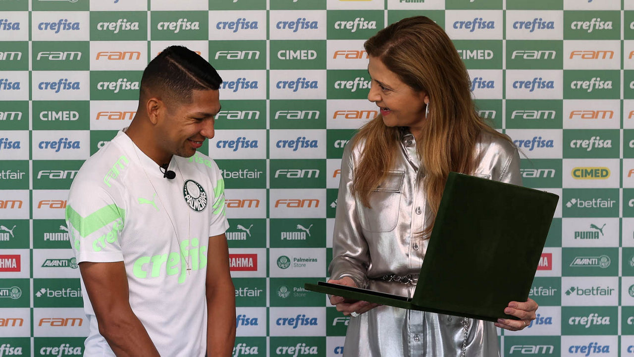 O atacante Rony recebeu das mãos da presidente Leila Pereira uma placa e uma camisa em alusão aos 200 duelos do camisa 10 alviverde, marca alcançada contra o Atlético-MG, na última quarta-feira (09), pela CONMEBOL Libertadores. Leila valorizou a entrega do Rústico em campo e seus feitos como, por exemplo, ser o maior artilheiro do clube na história da competição continental, com 20 gols.