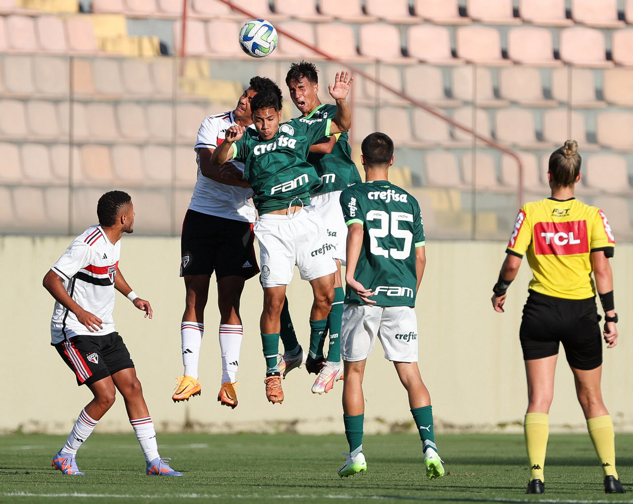 O time Sub-17 do Palmeiras empatou com o São Paulo por 3 a 3, nesta quarta-feira (13), na Arena Barueri, em partida válida pela nona e última rodada da primeira fase do Campeonato Brasileiro da categoria. Os gols das Crias da Academia foram marcados por Riquelme Fillipi e Vitor Reis.