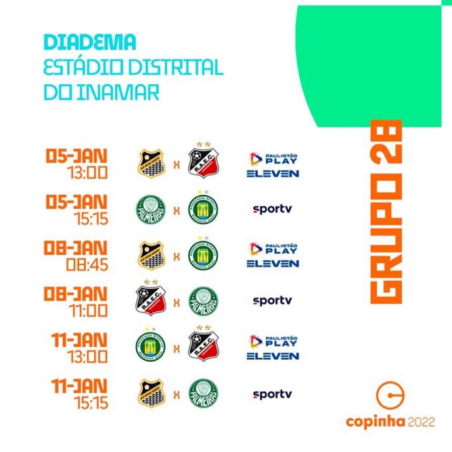 As Crias da Academia farão a primeira fase da competição na cidade de Diadema, localizada a 23km da capital paulista. Além do ASSU-RN, os adversários do Verdão no Grupo 28 serão Água Santa e Real Ariquemes, de Rondônia (confira abaixo a arte com a tabela completa).