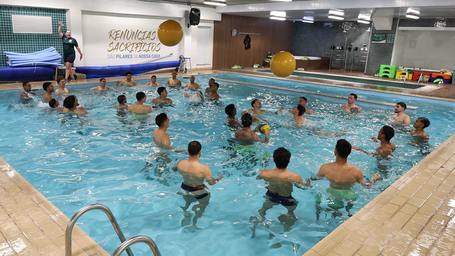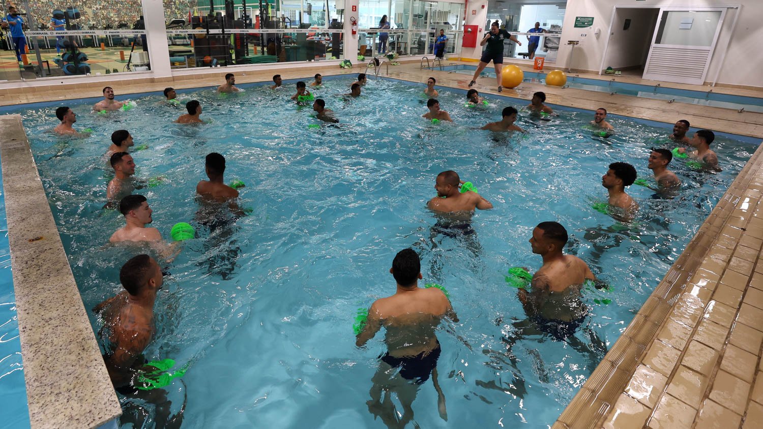 Após a disputa de jogo-treino contra o E.C. São Bernardo no sábado (11) e atividades em dois períodos durante a semana, o elenco realizou trabalhos regenerativos na parte interna do centro de excelência, como exercícios preventivos de mobilidade, força e hidroginástica na piscina.
