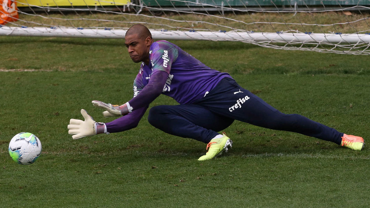 O goleiro Jailson participou da atividade desta quinta-feira defendendo uma das metas (Cesar Greco/Palmeiras)