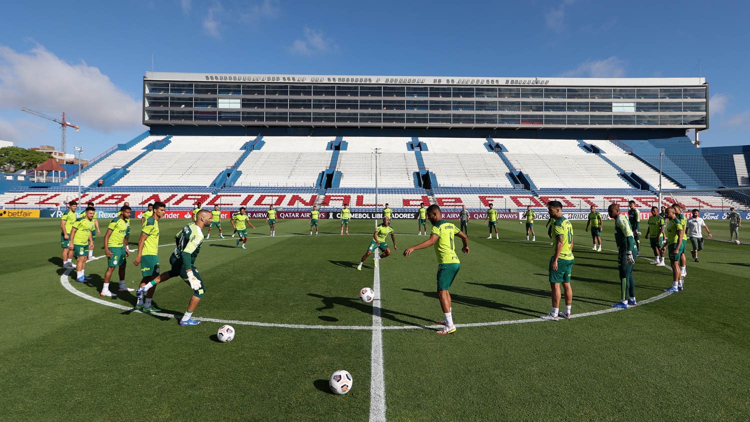 Antes do treinamento na casa do Nacional-URU, a delegação alviverde visitou o Centenário e reconheceu por 15 minutos o gramado e as instalações do palco da decisão, inaugurado em 1930 e reformado recentemente para a final. O treinador alviverde e o meio-campista Felipe Melo concederam entrevista coletiva à imprensa no local.