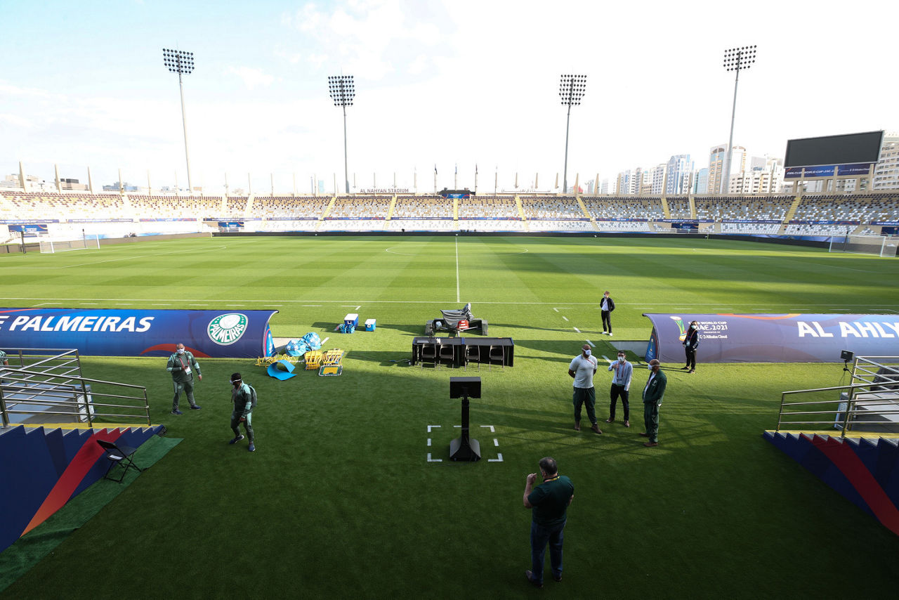 O Palmeiras realizou na tarde desta segunda-feira (07) seu último treino e o reconhecimento de gramado no Estádio Al Nahyan, em Abu Dhabi-EAU, palco da estreia no Mundial de Clubes da FIFA. O Verdão enfrentará na semifinal o Al-Ahly, do Egito, nesta terça-feira (08), às 13h30 (horário de Brasília, 20h30 no horário local).