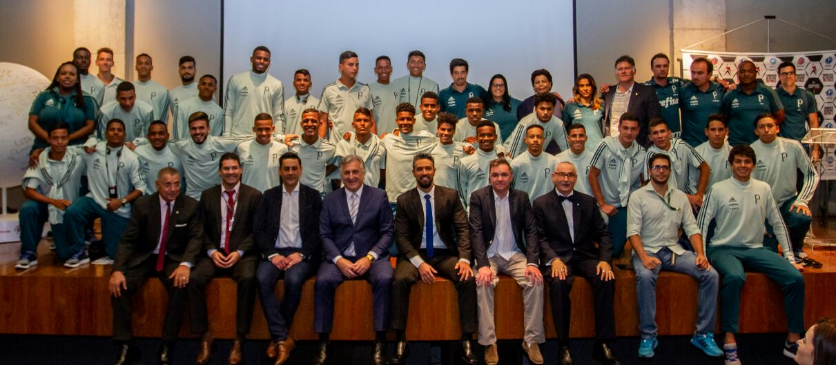 A base do Palmeiras trabalha não só para formar grandes jogadores, mas também bons cidadãos. Pensando nisso, o Centro de Formação de Atletas do clube promove um cronograma mensal de palestras e eventos para conscientizar os jovens sobre temas pertinentes à vida da criança e do adolescente. Nesta segunda (23), por exemplo, o Sub-17 do Verdão marcou presença no encontro internacional “Chega de Abuso no Esporte”, no Museu do Futebol.